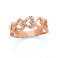 【送料無料】ハートデザインピンクゴールド・ピンキーリングとっても愛らしいピンク色のダイアピンキーリングです。一味違った色合いをお楽しみください。デザインは7つのハートを交互につなげセンターの3つのハートにはダイアをセットしました。ダイヤモンド 0.02ct素材k10ピンクゴールドサイズリング最大幅: 4.7mmリング最小幅: 2.0mm送料全国すべて無料です◎特注サイズの納期は約3週間となります。
